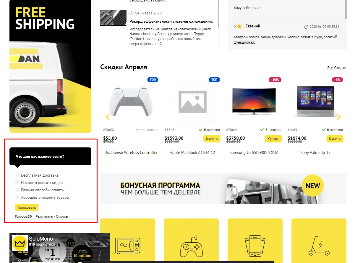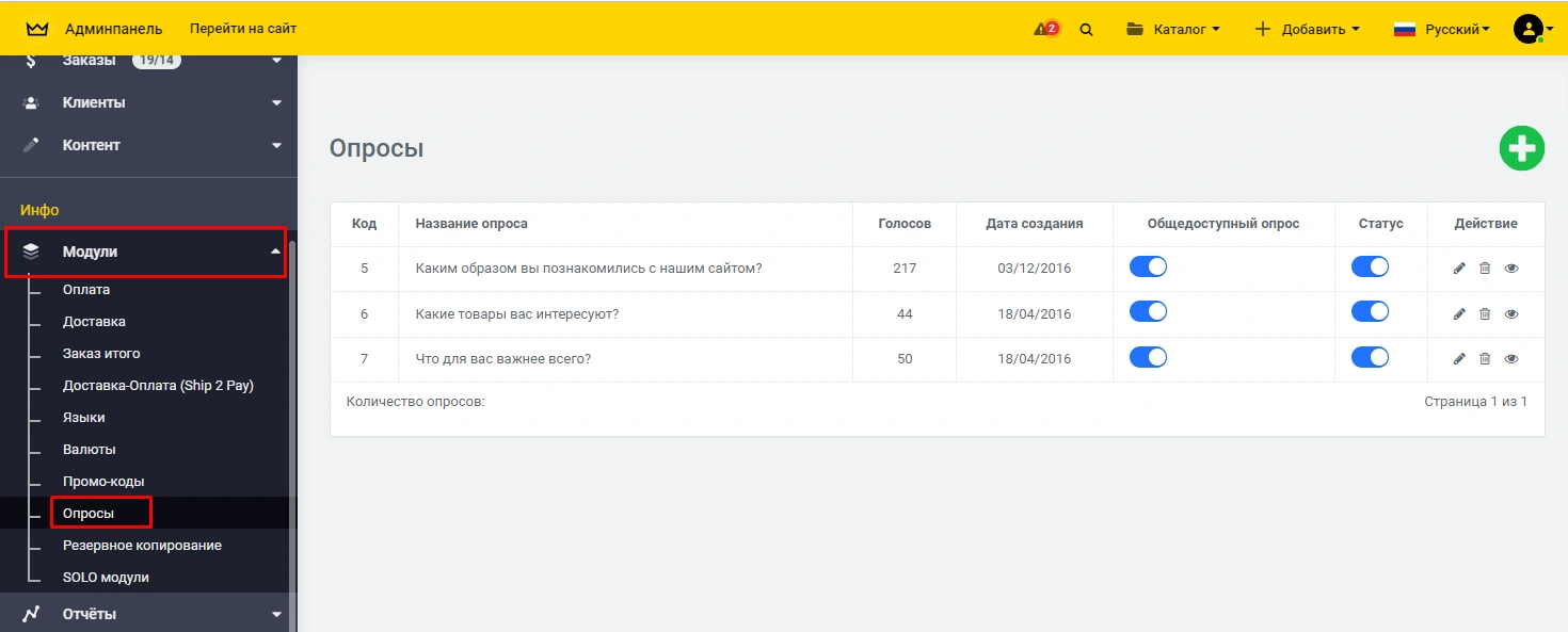 Команда Solomono разработала удобный функционал для работы с модулем опросов в Вашем интернет-магазине.