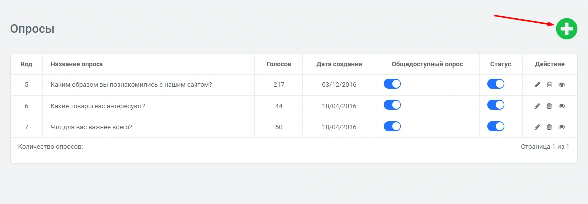 При нажатии на иконку "+" можно создать/добавить новый опрос: