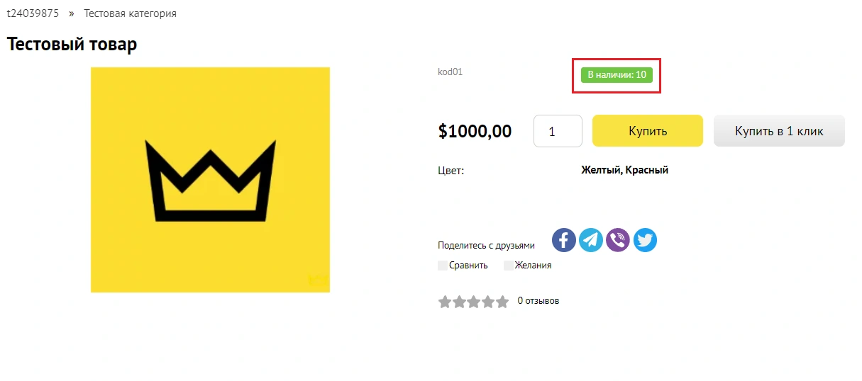 Вывод наличия и количества на странице товара