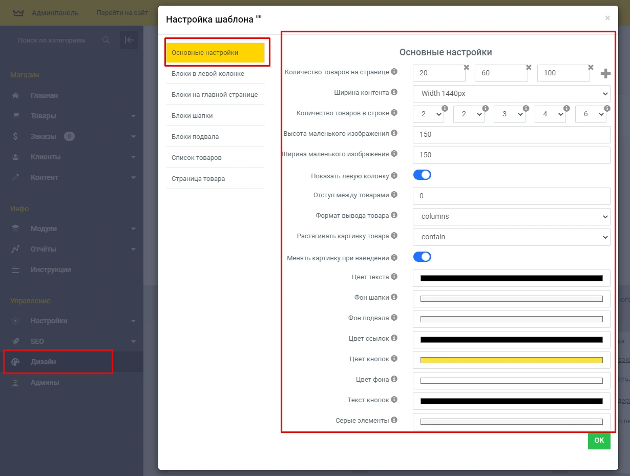 По настройке всего дизайна магазина смотреть инструкцию здесь: https://solomono.net/ru/1-osnovni-nalashtuvannja-a-580.html. В инструкциях, в разделе "Дизайн - Настройки шаблона" у Вас есть возможность подробно ознакомиться с каждым разделом, по настройке внешнего вида Вашего магазина.