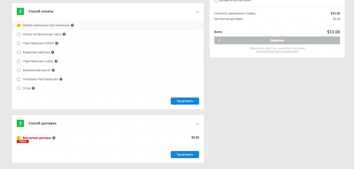 Теперь при оформлении в чекауте будет доступен модуль "Бесплатная доставка".