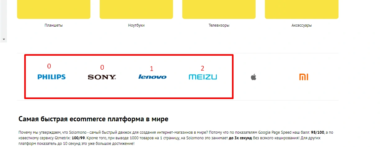и все нужные Вам бренды будут отображаться на главной странице Вашего сайта: