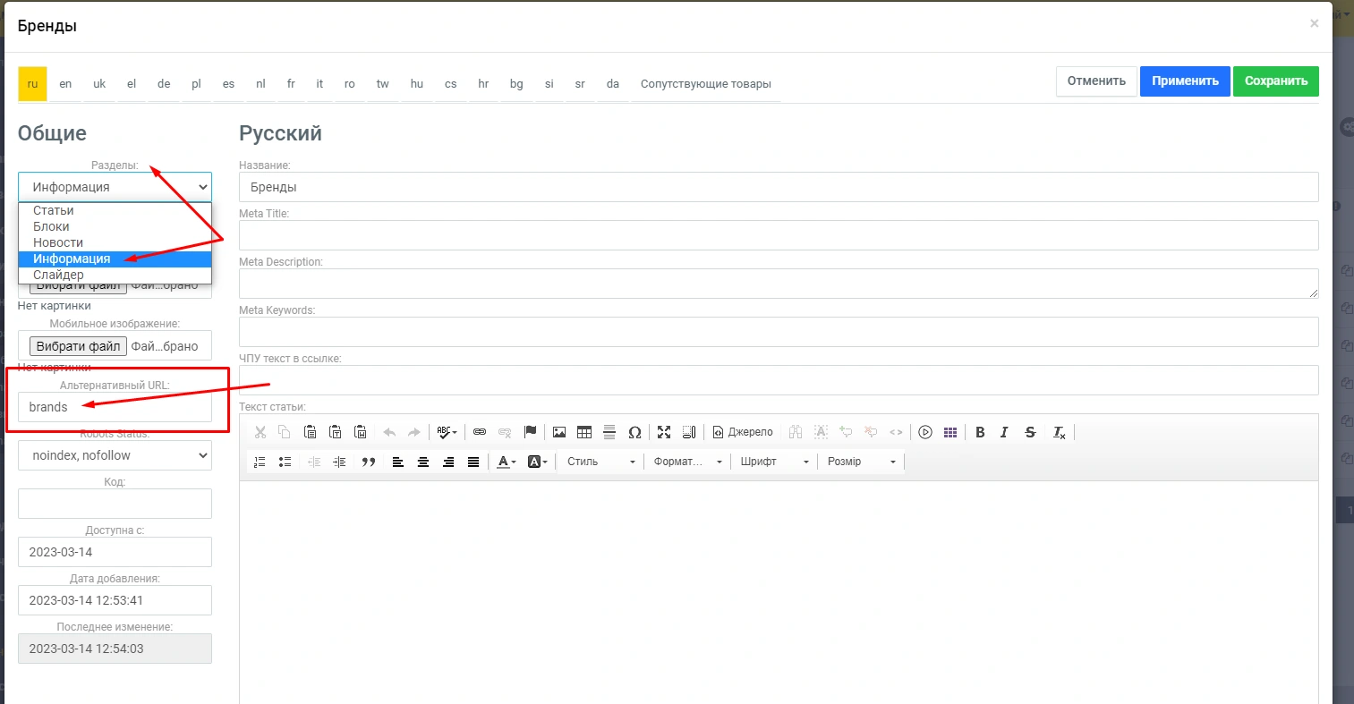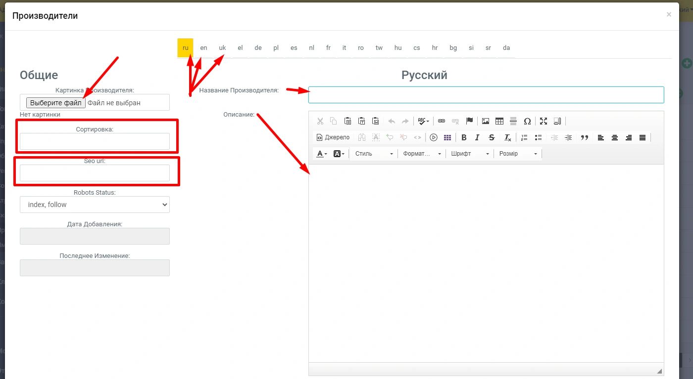 Обратите внимание на заполнение информации при добавлении нового поставщика, заполнять нужно на всех доступных языках для Вашего сайта.