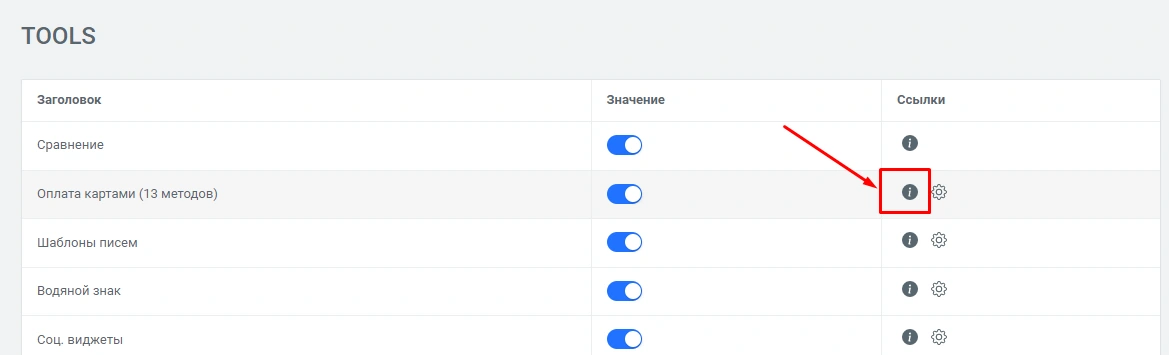 Перед покупкой или установкой любого модуля советуем почитать информацию об интересующем Вас модуле, нажав напротив модуля иконку "Информация" Вы перейдете на определенную страницу с описанием.