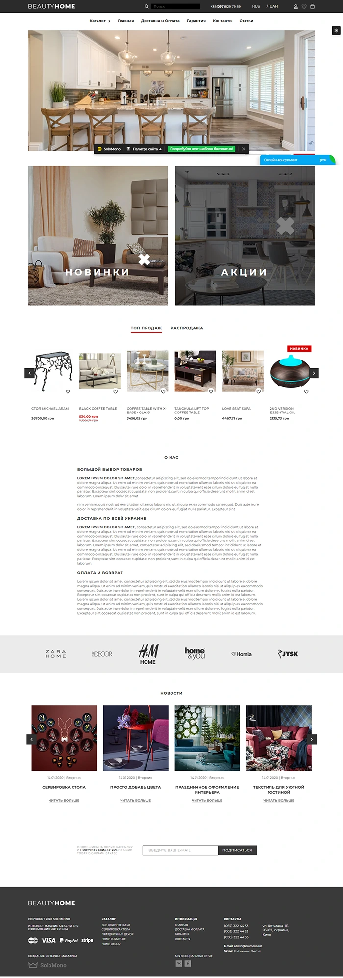 Бесплатно поюзать демо-версию дизайна интернет-магазина мебели можно по ссылке. Вот так может выглядеть ваш ИМ.