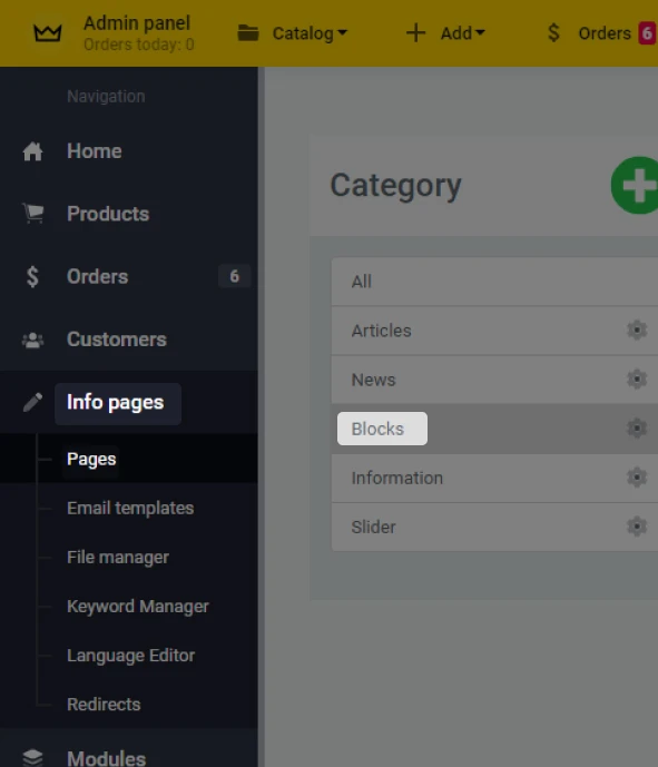 To this end, the site admin area, you have to pass: "Info pages / Pages / Blocks":