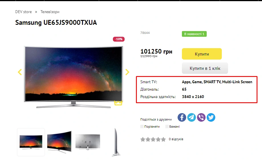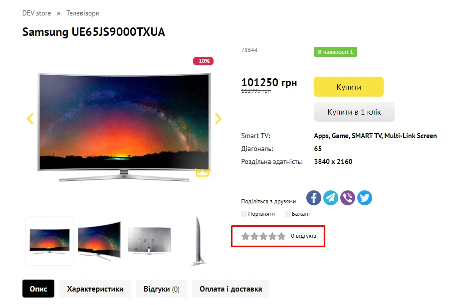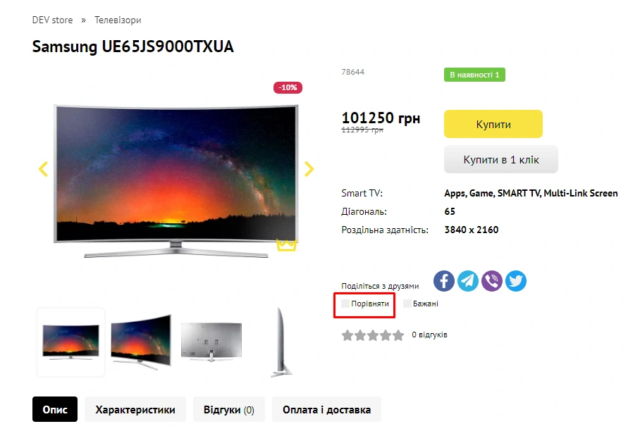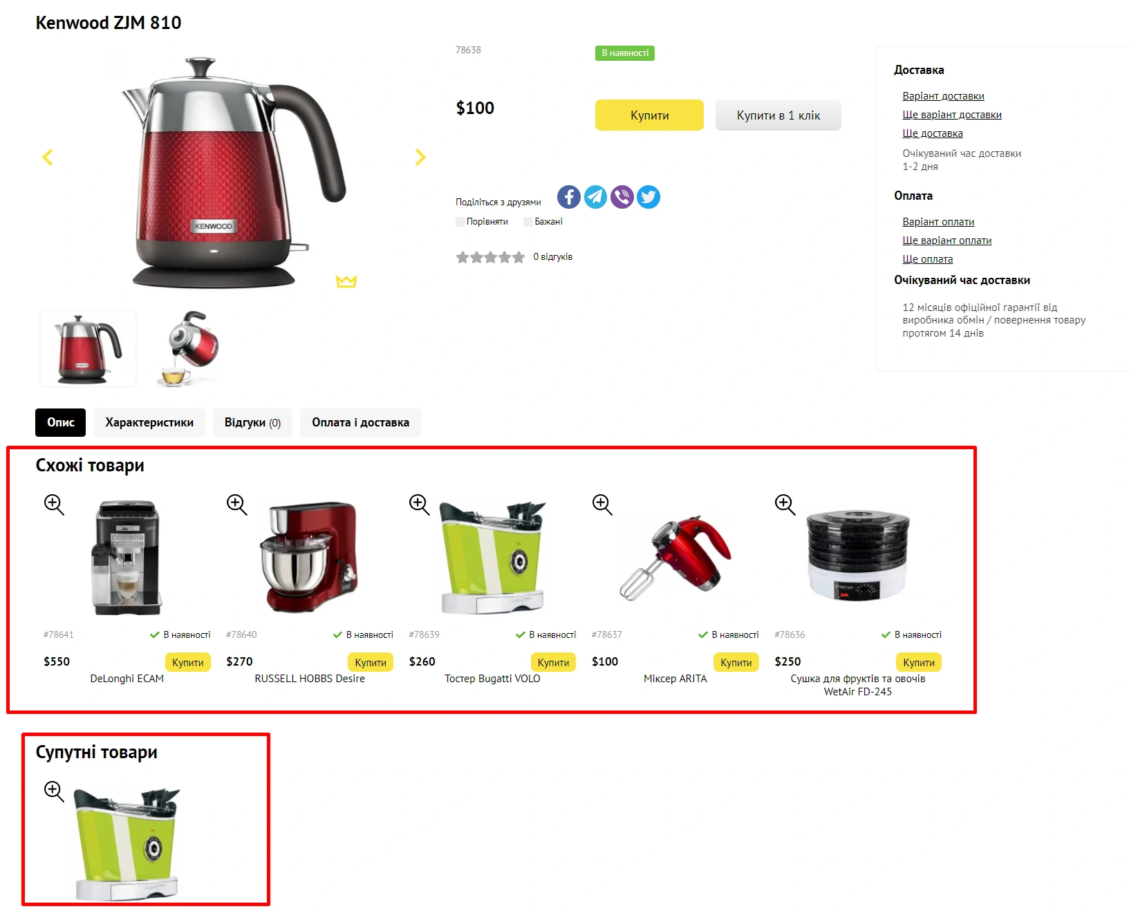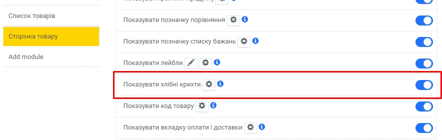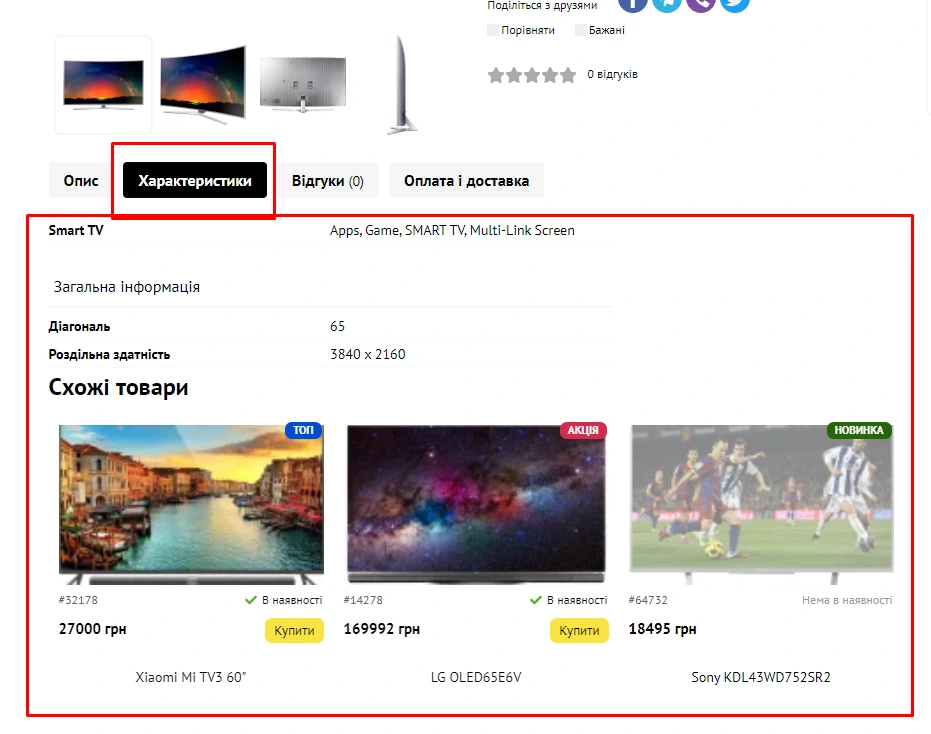 Налаштування Сторінки товару вашого сайту здійснюється через панель адміністрування: сторінка "Налаштування" - "Дизайн" - налаштування дизайну шаблону - розділ "Сторінка товару".