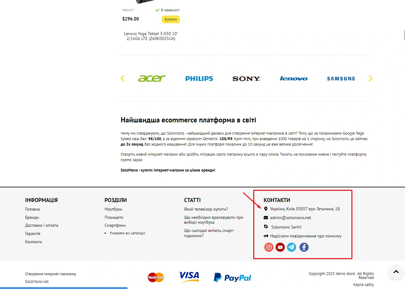 Команда Solomono розробила зручний функціонал для роботи з контактною інформацією, що розміщується у Вашому інтернет-магазині.