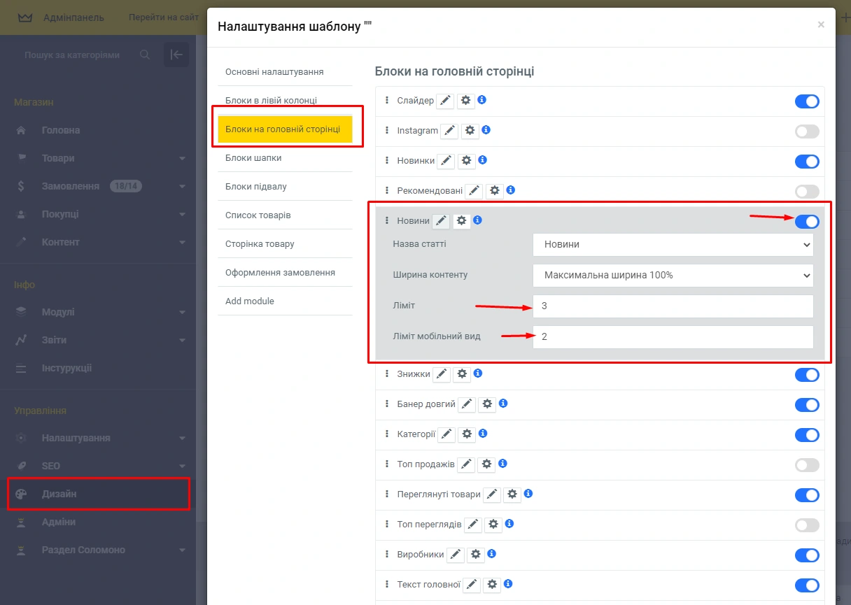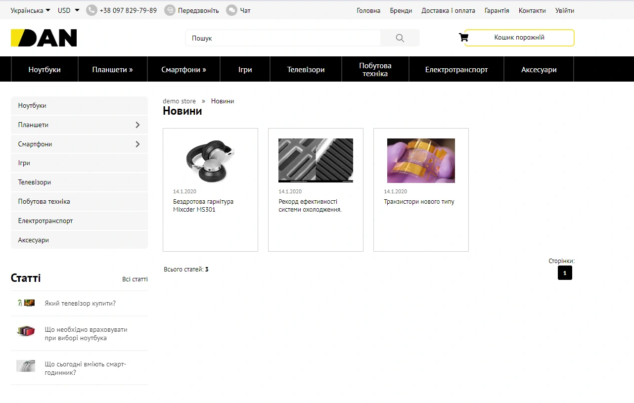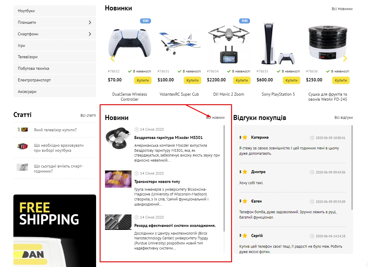 Блок “Новини” дозволяє повідомити потенційних покупців актуальну інформацію про Ваш інтернет-магазин.