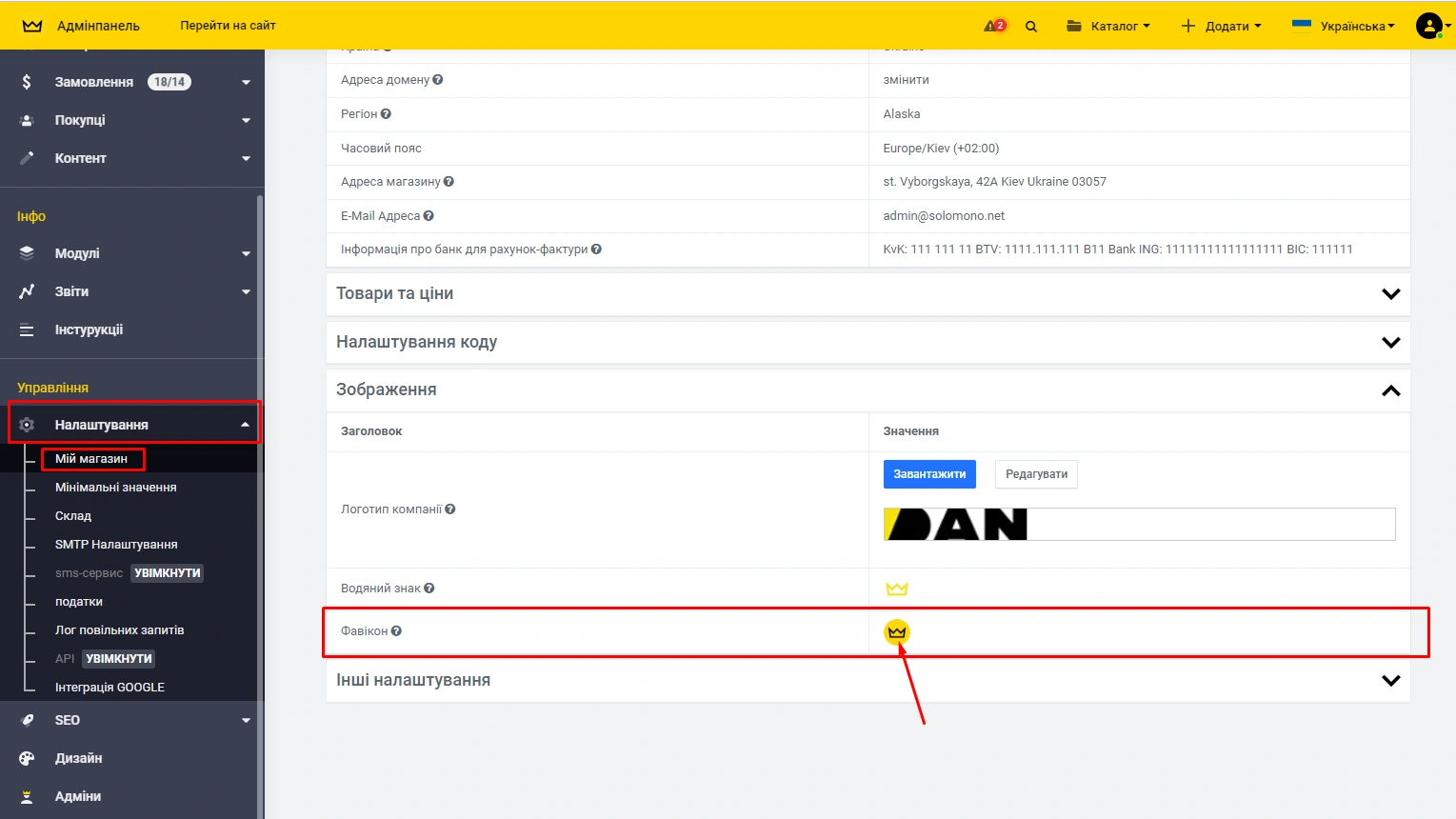 У панелі адміністрування -> "Налаштування" -> "Мій магазин" -> "Зображення":