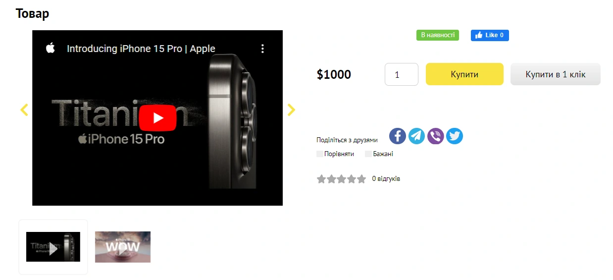 В меню створення чи редагування товару ви маєте можливість додати YouTube відео. Для цього просто скопіюйте посилання на потрібне вам відео та додайте його у відповідне поле, як зображено на скріншоті.