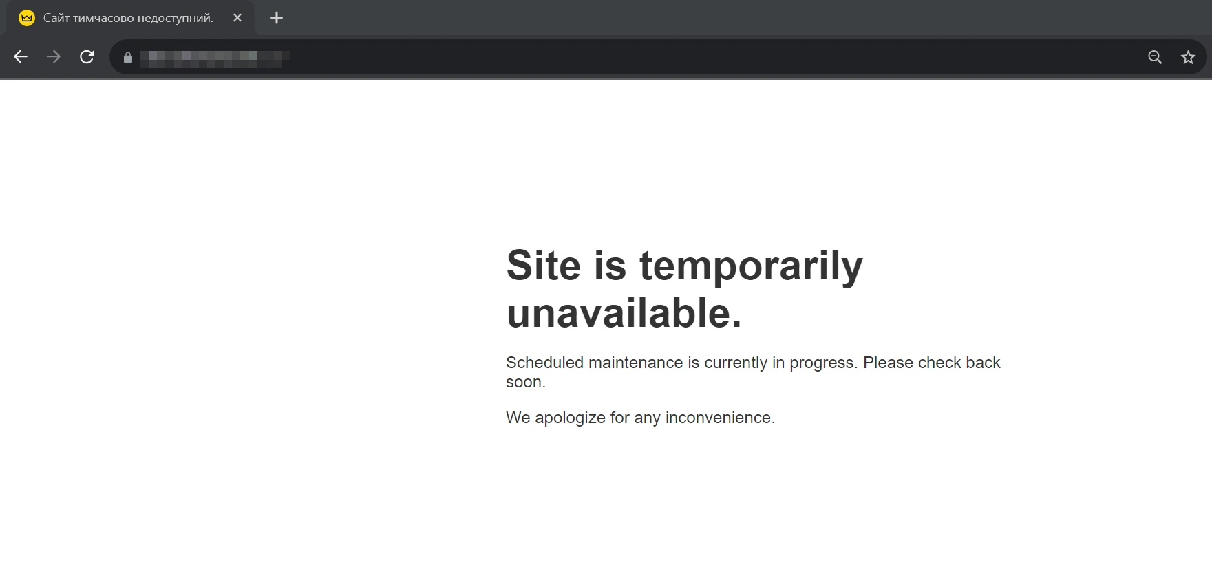 Тепер ваш сайт буде закритий для користувачів (для адміністратора сайт залишається доступним) і вони бачитимуть дане повідомлення: