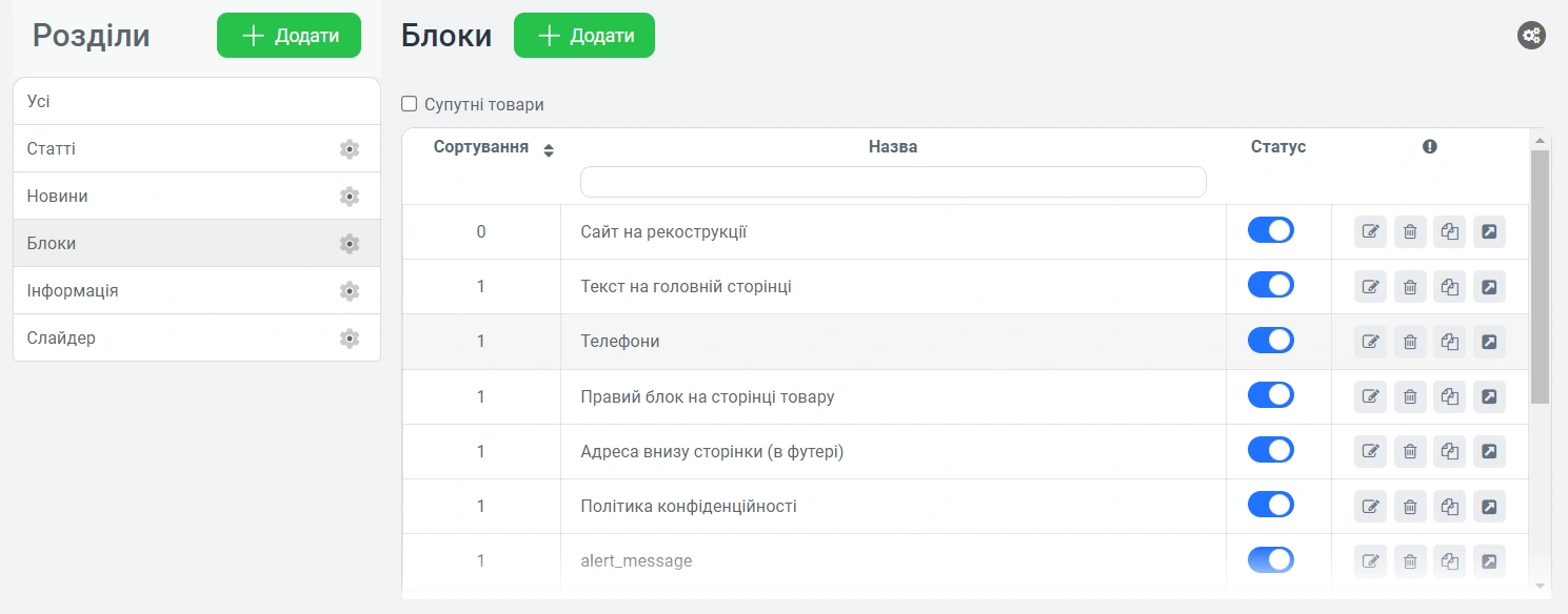 На сторінці "Контент" - "Сторінки" у розділі "Блоки" знаходиться стаття під назвою "Телефони". Вказаний в ній номер телефону відображається в шапці магазину. За бажання, ви можете налаштувати цю статтю таким чином, щоб при натисканні на номер телефону відразу здійснювався дзвінок. Про те, як це зробити, розповімо детальніше в цій інструкції.