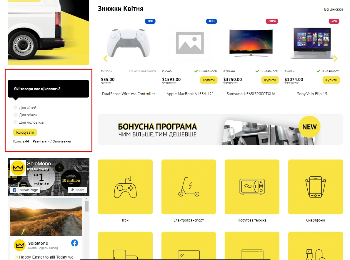Команда Solomono розробила зручний функціонал для роботи із модулем опитувань у Вашому інтернет-магазині.