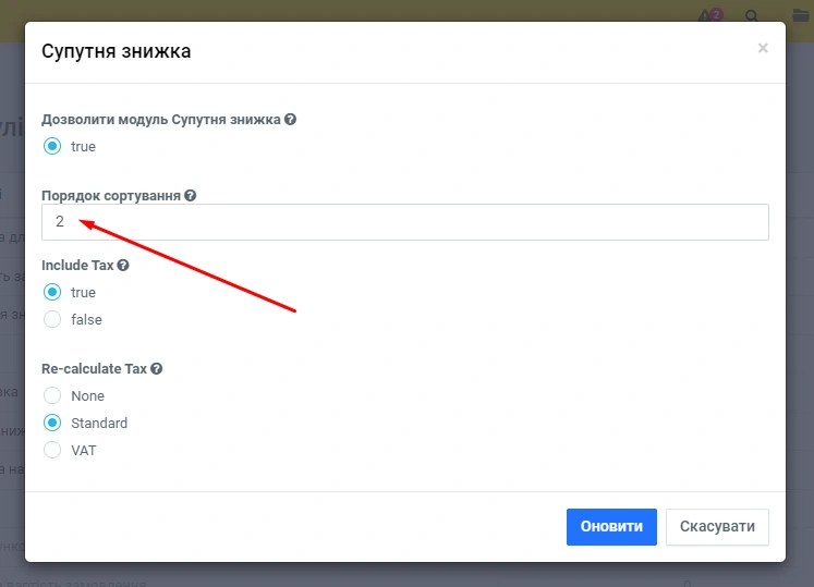 Ви перейдете в модальне вікно налаштування модуля, тут Ви можете виставити, наприклад, порядок сортування: