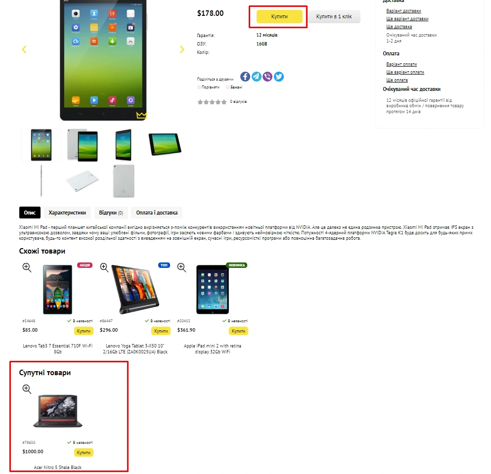Тепер при виборі товару на сайті, на сторінці буде доступним блок "Супутні товари":