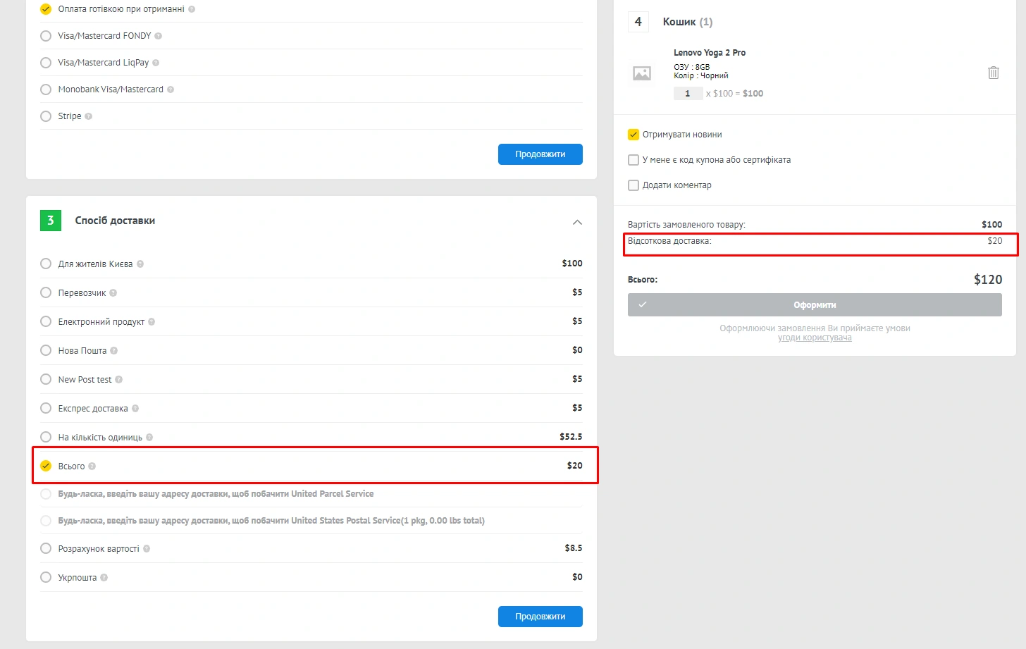 Тепер при оформленні в чекауті буде доступний модуль "Відсоткова доставка".