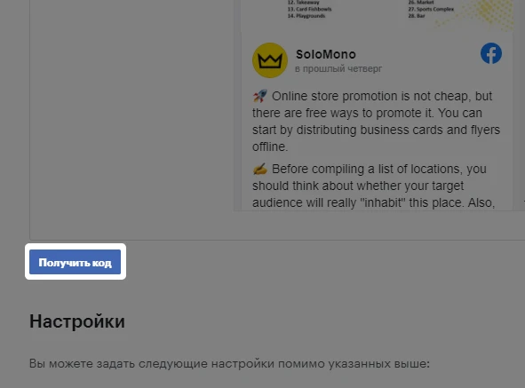 Після налаштувань, вам необхідно натиснути кнопку "Отримати код"