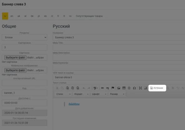 Для цього ми пройдемо "Контент / Сторінки / Блоки" і праворуч від назви "Банер зліва 3" натиснемо "Оновити".