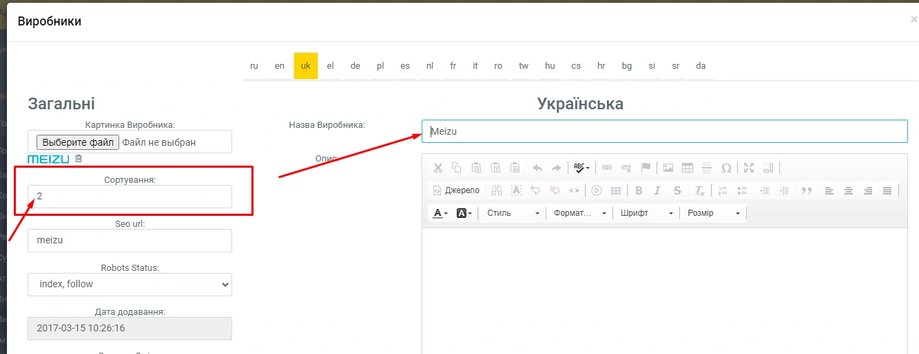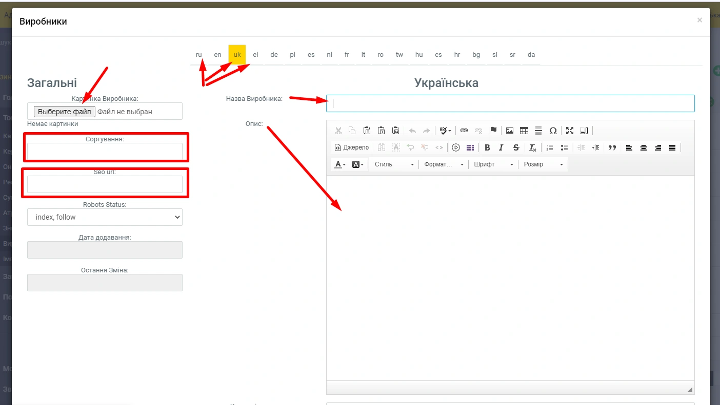 Зверніть увагу на заповнення інформації при додаванні нового постачальника, заповнювати потрібно всіма доступними мовами для Вашого сайту