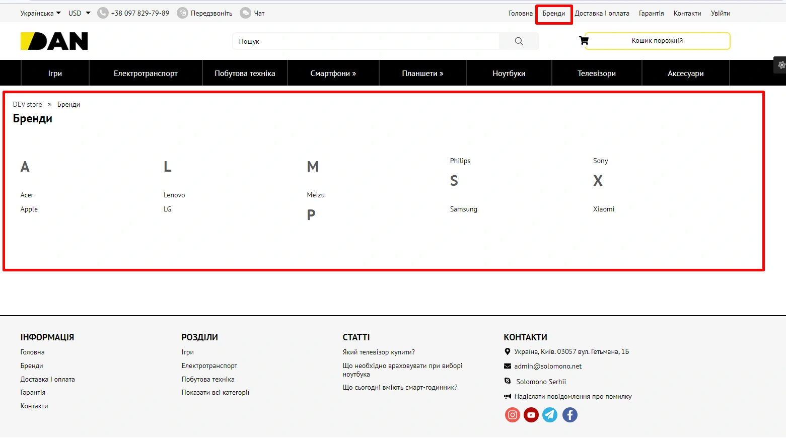 і всі потрібні Вам бренди будуть відображатися на головній сторінці Вашого сайту: