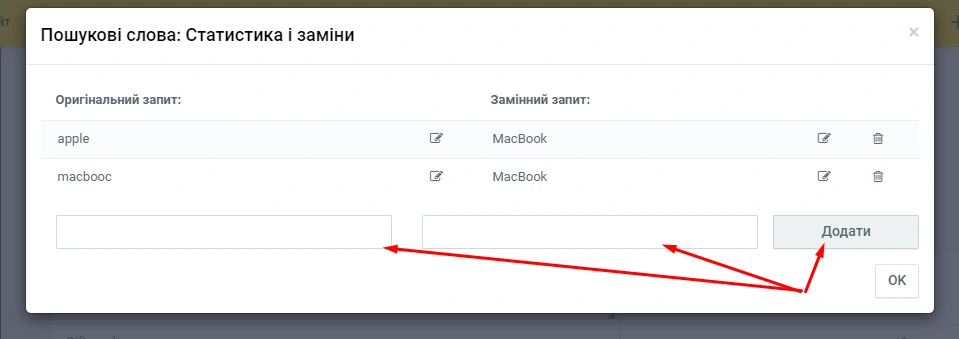 "Дивитись слова/запити"