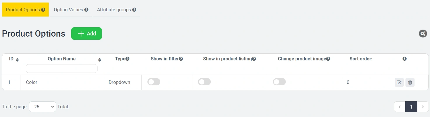 In the "Attributes" tab of the product card, for each attribute value, you have the option to specify the following: