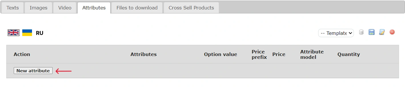 • Load the specified template - load attributes of the selected template in the dropdown list into the product.