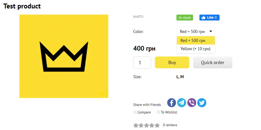 • Price prefix and price - the cost of the product with the selected attribute value will increase (+), decrease (-), or equal (=) the value specified in the "Price" column to the right of the "Price Prefix" column. The product will change its price depending on the selected attribute value, but only if it is possible to switch between attribute values on the product page (for example, if the attribute is of type "Dropdown").