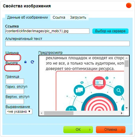 3. Click "Send it to the server" and you will see a downloadable image with dimensions, etc. It is very important, before adding a picture, read the instructions to the end, because below describes how to process the image so that in the mobile version everything is correctly displayed.