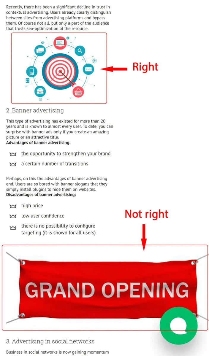 • The picture will go beyond the width of the text, and this is wrong and looks ugly.